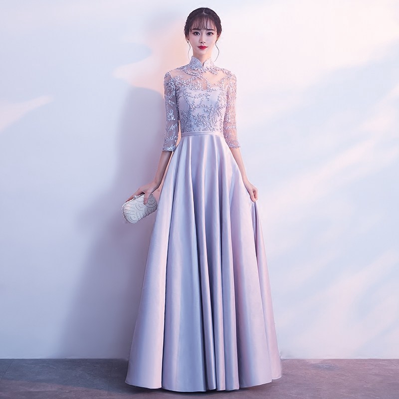 Gaun pesta dress memiliki ciri panjang dan secara umum terbuat dari bahan sifon sutera dan sejenisnya. Tubuh terlihat ramping dan pas. Brides maid baju kembar keluarga baju keluarga pengantin baju seragam pesta.